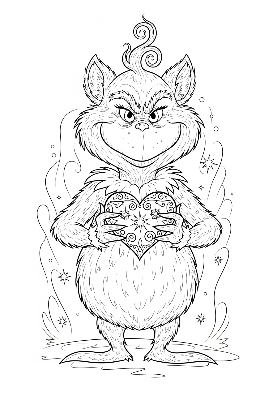 Introducing our merry grinchmas coloring page, a delightful way to bring the whimsical world of Grinchmas into your home or classroom. This page is designed to capture the festive and mischievous spirit of Grinchmas, featuring a playful Grinch in the center, dressed in a Santa-like suit, with a sly expression that children will love bringing to life with color. To his left, the cheerful Reindeer Dog, complete with antlers and a wagging tail, adds a touch of humor and joy. On the right, a sack of gifts overflowing with toys and candy canes creates a sense of excitement and anticipation. The background is adorned with snowflakes and a beautifully decorated Christmas tree, setting the perfect holiday scene. Ideal for boosting creativity and fine motor skills, this coloring page provides an engaging activity that encourages relaxation and imagination. Perfect for classroom use, home crafting, or as a travel activity, it offers a therapeutic and mindful experience for children. This coloring page is not just about coloring within the lines; it's about bonding time, fostering a sense of accomplishment, and exploring the festive spirit of the holidays. Download and print this merry grinchmas coloring page for a fun-filled holiday activity that promises joy and creativity.