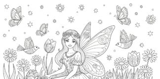 Fairy in a Floral Meadow Coloring Page