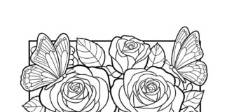 Coloring Page of Rose and Butterfly