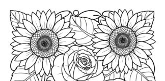 Sunflower and Rose Coloring Page