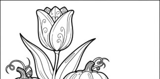Halloween Tulip with Pumpkins Coloring Page