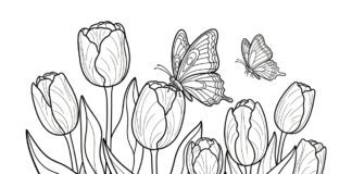 Tulip and Butterfly Coloring Page