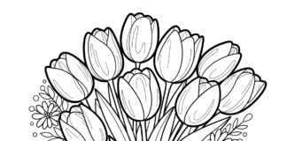 Tulip Bouquet for Mother’s Day Coloring Page