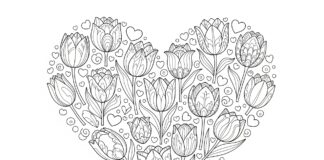Valentine’s Tulip Heart Coloring Page