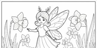 Daffodil Fairy in a Flower Field Coloring Page