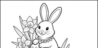 Easter Bunny with Daffodils Coloring Page