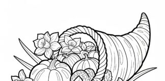 Thanksgiving Cornucopia with Daffodils Coloring Page
