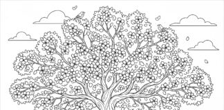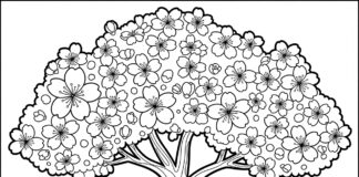 Cherry Blossom Tree in Full Bloom Coloring Page