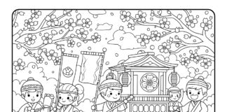 Cherry Blossom Festival Parade Coloring Page