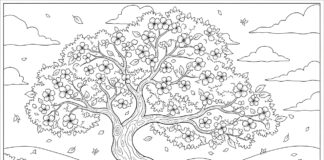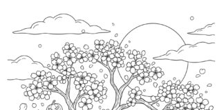 Cherry Blossom in Autumn Setting Coloring Page