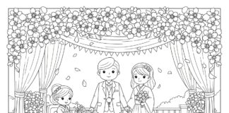 Cherry Blossom Wedding Scene Coloring Page