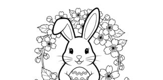 Easter Bunny with Cherry Blossoms Coloring Page