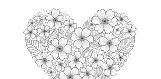 Valentine’s Day Cherry Blossom Heart Coloring Page
