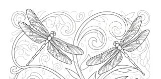 Orchid and Dragonfly Summer Coloring Page