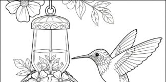 Hummingbird at a Feeder Coloring Page