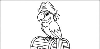 Pirate Parrot on a Treasure Chest Coloring Page