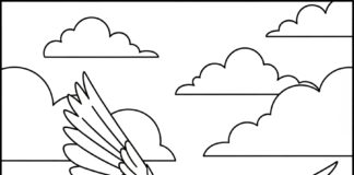 Parakeet Flying Through Clouds Coloring Page