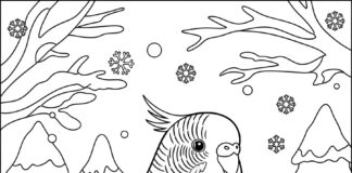 Parakeet in a Winter Wonderland Coloring Page