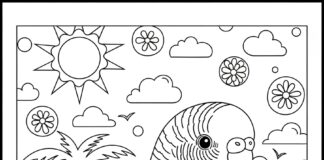 Parakeet on a Beach Day Coloring Page