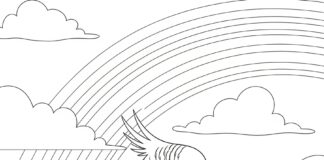Parakeet with a Rainbow Background Coloring Page