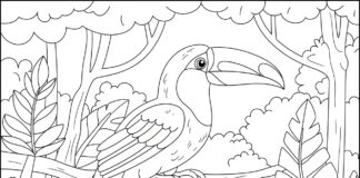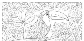 Toucan in a Rainforest Coloring Page