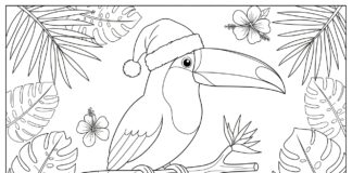 Toucan Wearing a Santa Hat Coloring Page