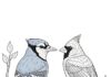 Blue Jay and Cardinal Friendship Coloring Page