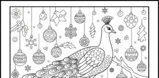 Peacock in a Christmas Wonderland Coloring Page