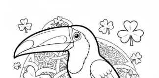 Toucan and Leprechaun Hat Coloring Page