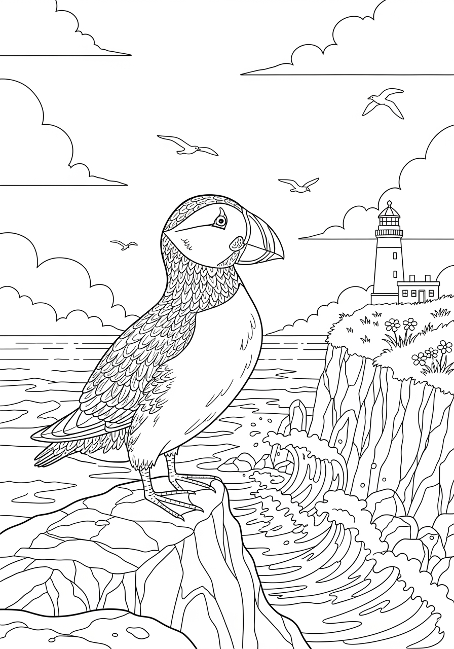 Whether used in a classroom setting or at home for a relaxing activity, this coloring page offers a wonderful opportunity for children to unwind and focus. It's also a fantastic tool for travel or mindfulness exercises, as it provides a calming and rewarding experience. Perfect for printing and sharing, this puffin bird coloring page promises endless joy and a sense of accomplishment for kids. The combination of nature and art offers a unique bonding time between parents and children, fostering a love for wildlife and creativity.