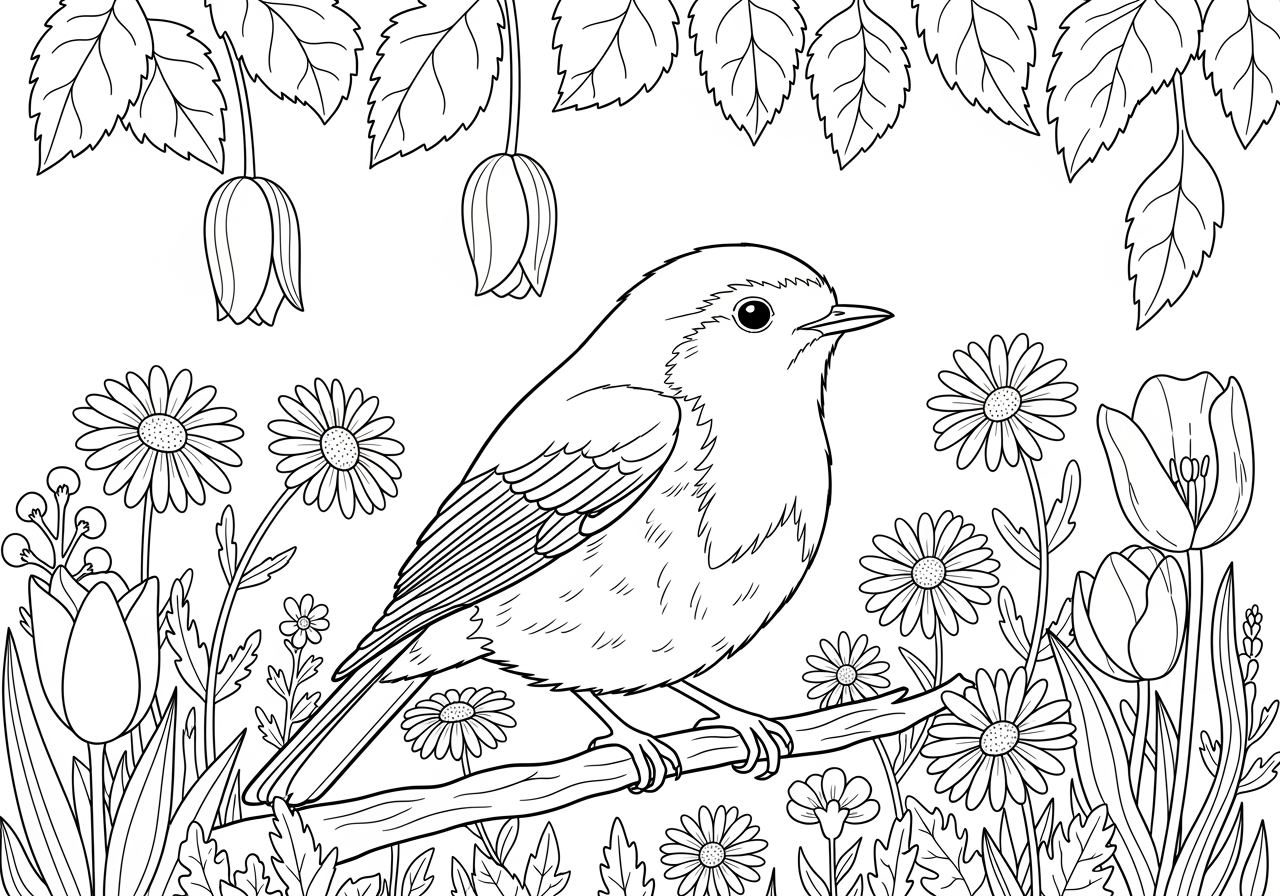 Introduce your child to the delightful world of nature with our robin bird coloring page. Featuring a charming robin perched on a branch amidst a serene natural setting, this coloring page is designed to captivate and entertain. The simple black-and-white line art allows young artists to explore their creativity while developing fine motor skills. Suitable for printing, it serves as an excellent resource for both home crafts and classroom activities. Whether you're using it for a quiet afternoon project or as a travel-friendly activity, this robin bird coloring page is sure to inspire imagination and joy. The presence of detailed yet simple elements like the bird's folded wings and expressive eyes, along with the textured branch and soft grass, offers a perfect balance for children learning to color. Watch as they take pride in their creations, enhancing their sense of accomplishment and patience. Download this printable robin bird coloring page today and let your child embark on a colorful adventure, all while learning about one of nature's beloved birds.