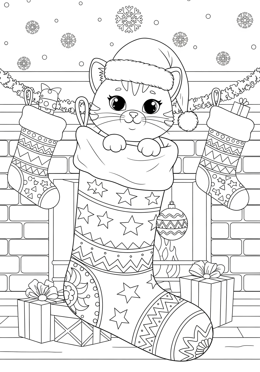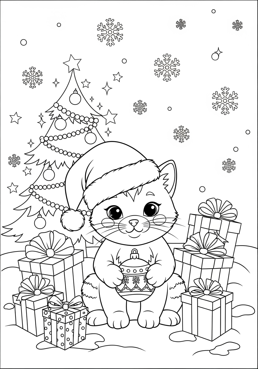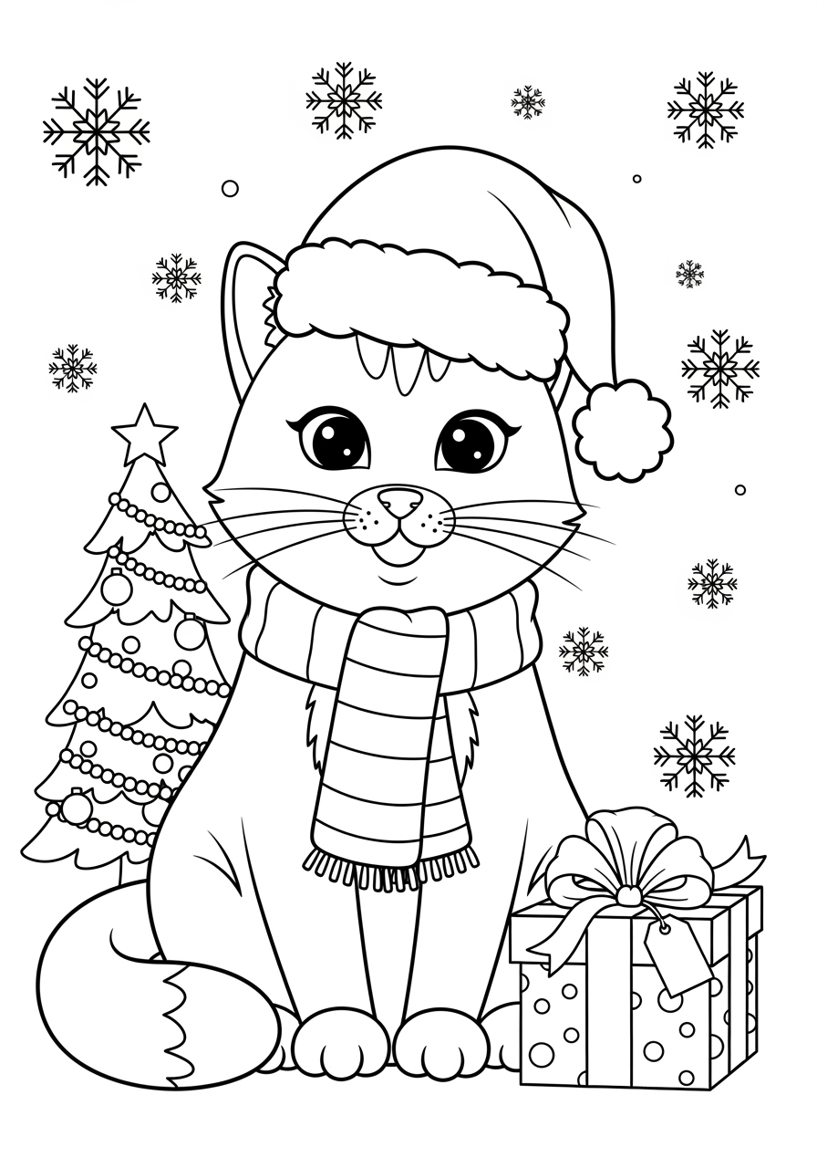Introduce your little ones to the festive joy of coloring with our cute Christmas cat coloring pages. Perfect for sparking creativity and enhancing fine motor skills, these delightful pages are ideal for both classroom and home activities. Whether you're looking to keep children entertained during holiday travels or seeking a fun, mindful activity for family bonding time, these coloring pages make for a charming choice. Each page features a whimsical cat in various Christmassy settings, ready to be brought to life with colors. So, print these pages out and let your child's imagination run wild while they enjoy the therapeutic benefits of coloring. Download now and add a sprinkle of feline fun to your holiday season with our cute Christmas cat coloring pages.