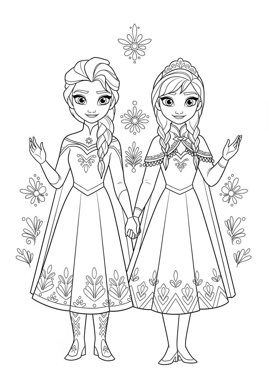 Anna and Elsa Frozen Coloring Page