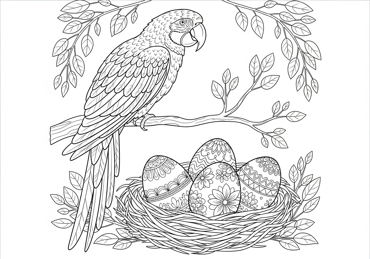 Say "Happy Easter!" with this coloring page. It features an adorable Easter bunny with a wheelbarrow. It will be a fun activity for the kids to color the Easter eggs to their liking. Just click the download button below and have you and your little ones have fun coloring this Easter illustration.