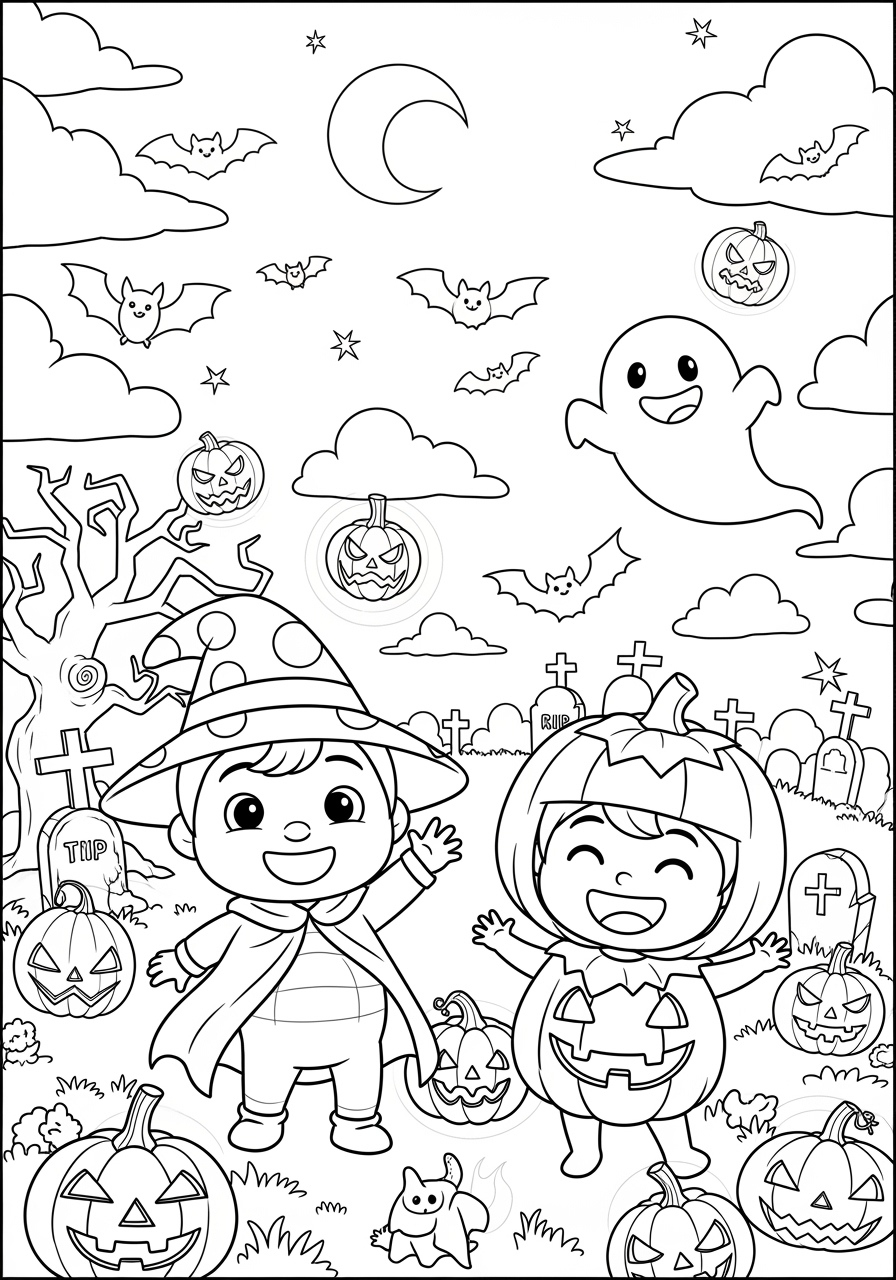 Dive into the enchanting world of Halloween with our "Halloween hawk with spooky background coloring page." This delightful coloring page is perfect for sparking creativity and enhancing fine motor skills in children. The image features a fierce hawk perched on an eerie branch, set against a spooky backdrop of a full moon and misty clouds. Stars twinkle across the night sky, casting a magical glow over a graveyard filled with ancient tombstones and grinning pumpkins. Bats flutter through the air, while gnarled trees add to the haunting ambiance. Ideal for classroom activities or home crafts, this coloring page provides a wonderful opportunity for kids to relax and express themselves artistically. It's a perfect way to engage children during the Halloween season, offering a sense of accomplishment as they bring the scene to life with their vibrant colors. Printable and easy to download, this coloring page is a fantastic tool for educators and parents looking to foster creativity and imagination in a fun, festive manner.
