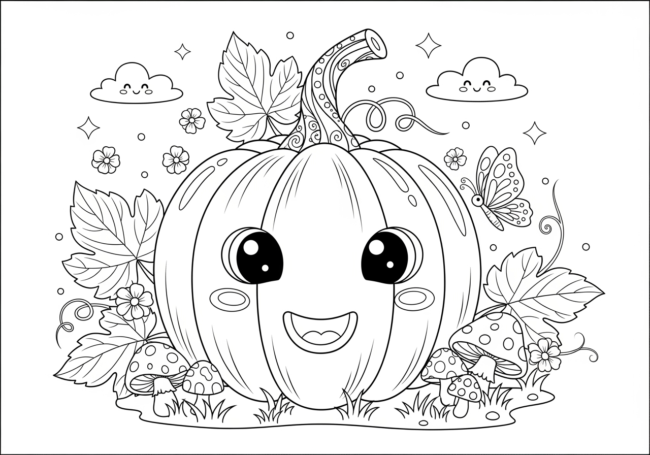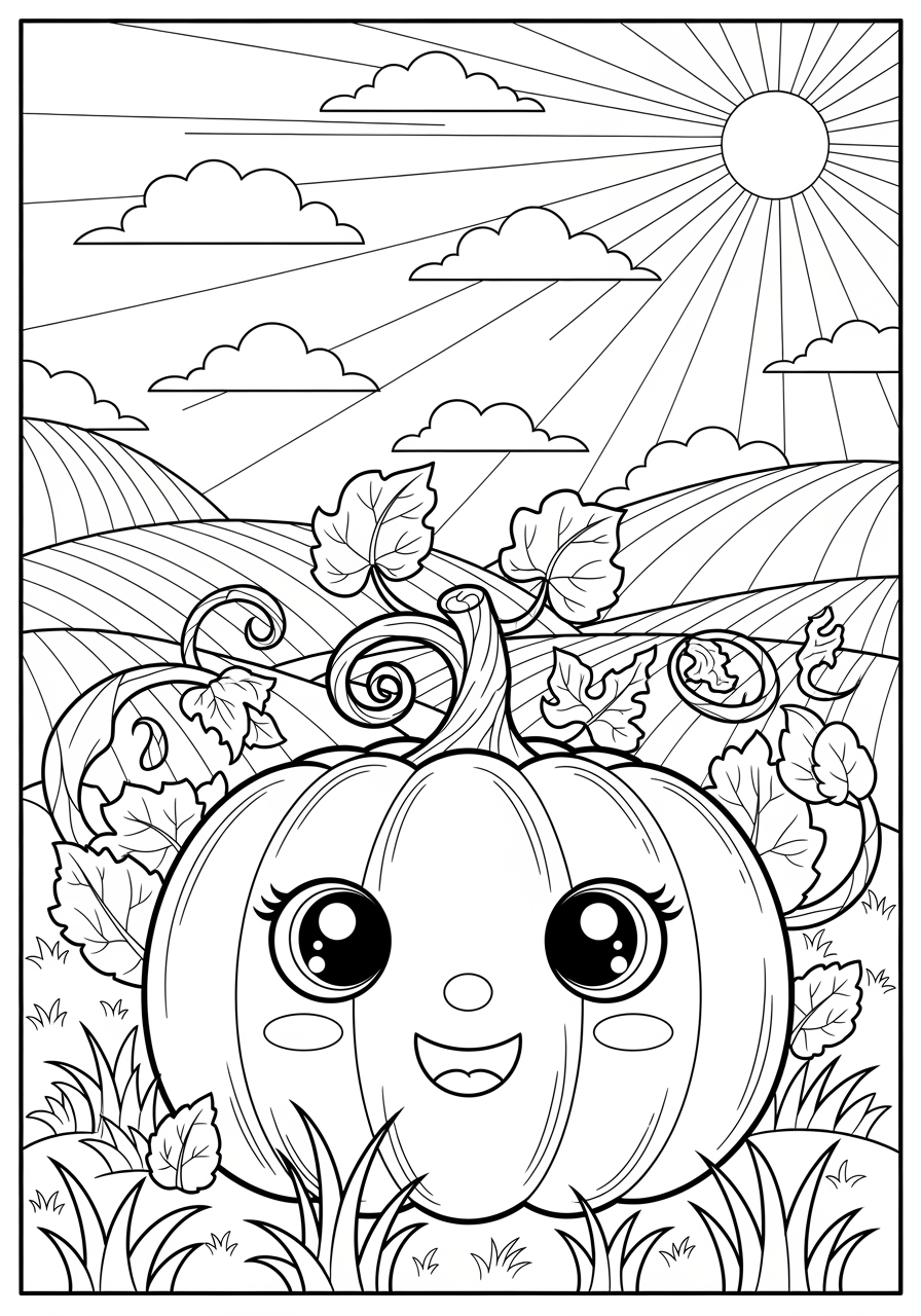 Cartoon Pumpkin Coloring Page to Print Out and Color