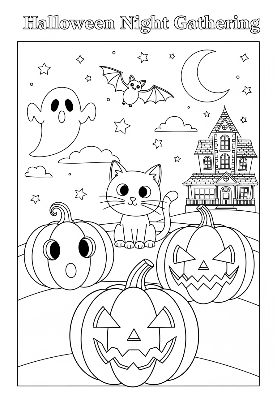 Discover the delightful and magical world of Halloween with our Halloween hummingbird coloring page, designed to inspire creativity and joy in children. This enchanting page features a whimsical hummingbird, playfully hovering in mid-air with its wings spread wide, adorned with a tiny witch's hat and pumpkin vines. This coloring page is perfect for sparking the imagination and enhancing fine motor skills, making it an ideal choice for parents and educators seeking engaging activities for kids. The background, a moonlit night sky filled with playful bats, ghost-like fireflies, and stylized leafless tree branches, sets the perfect spooky ambiance, without overwhelming small artists. This printable coloring page is a fantastic tool for use in classrooms, home crafts, or even during travel, offering a unique blend of festive spirit and artistic expression. As children immerse themselves in this Halloween hummingbird coloring page, they will enjoy a sense of accomplishment and relaxation, while also creating memorable bonding moments with family and friends. Encourage creativity and mindfulness this Halloween season with this unique coloring experience.
