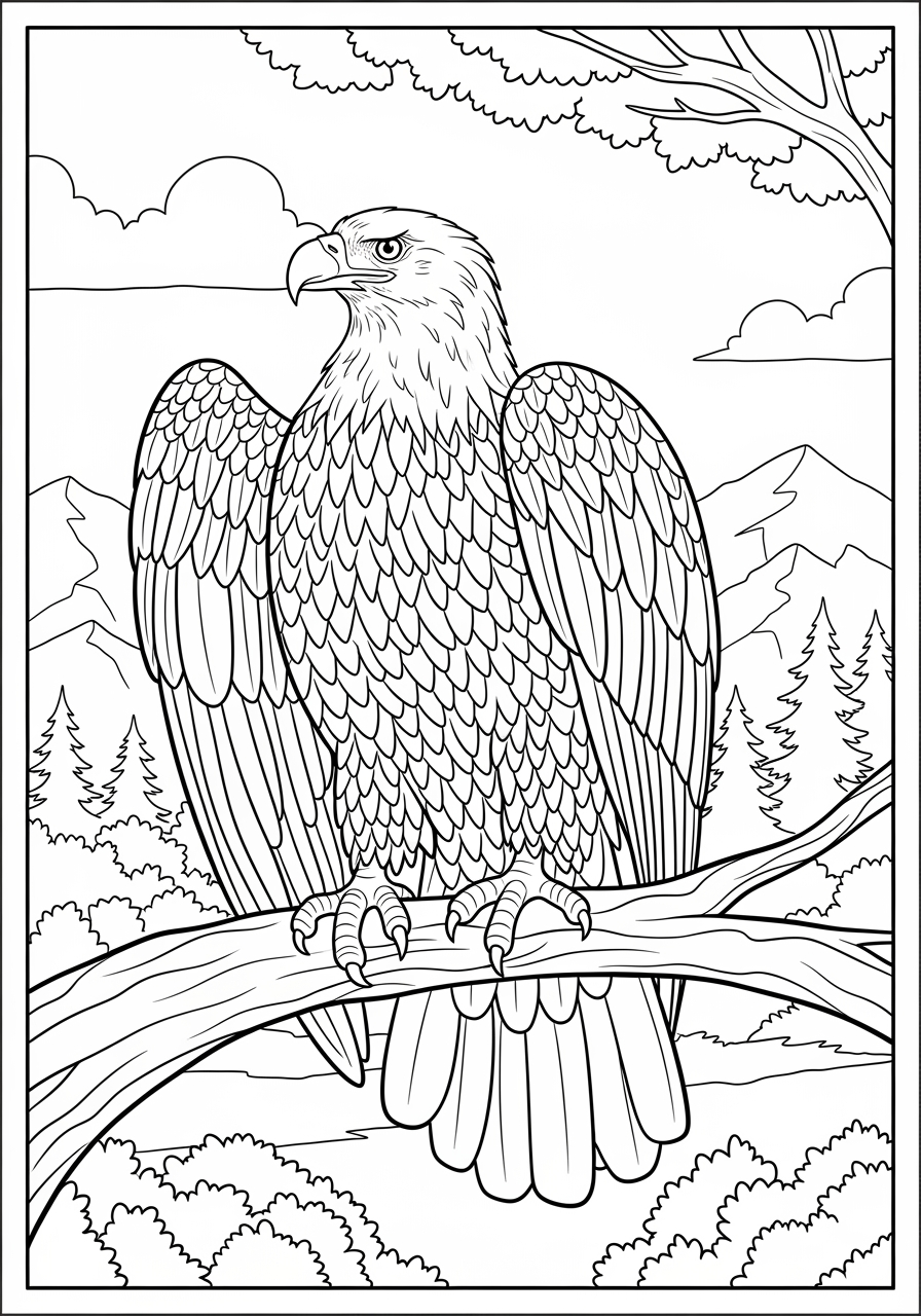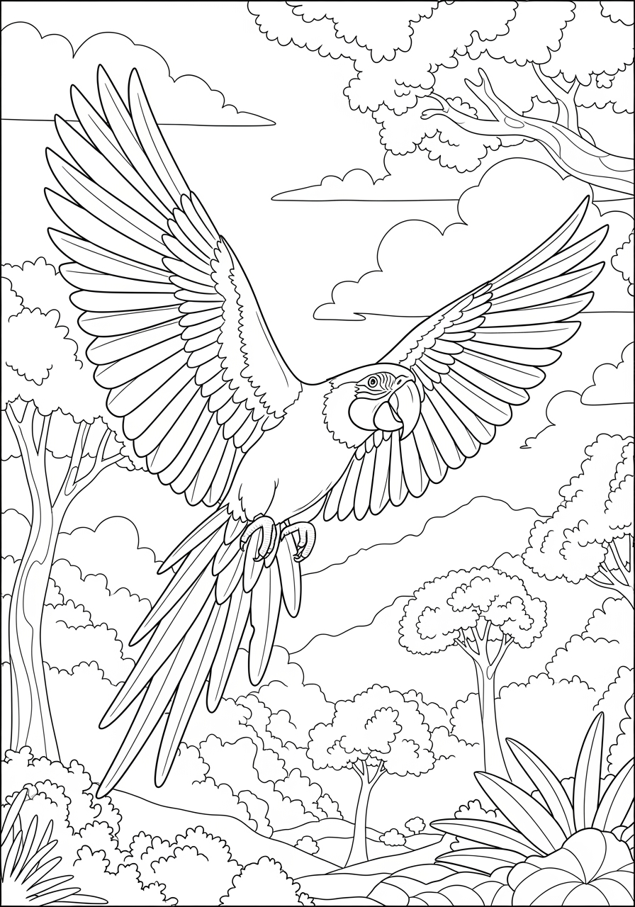 Introduce your child to the wonders of nature with our Hawk in a Forest Setting Coloring Page. This beautifully designed page features a majestic hawk perched gracefully on a tree branch, its sharp eyes and detailed plumage inviting young artists to explore their creativity. Set against a backdrop of a diverse and lush forest landscape, this coloring page offers several tall trees with textured bark and overlapping branches, inspiring a sense of adventure and discovery. The scene is completed with a touch of whimsy, as small birds flit in the distance and ferns and small flowers adorn the forest floor. Perfect for use at home, in the classroom, or while traveling, this coloring page not only provides a fun and engaging activity but also helps develop fine motor skills, patience, and relaxation. It offers an opportunity for children to bond with their parents or educators, creating joyful moments of shared creativity. By downloading this printable coloring page, you give your child the chance to experience the beauty of a forest ecosystem while enhancing their artistic skills. Encourage imagination and a sense of accomplishment as they bring this picturesque scene to life with their choice of colors.