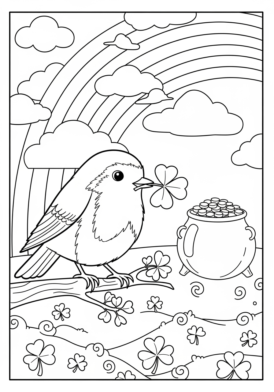 St. Patrick’s Day Robin with a Shamrock Coloring Page