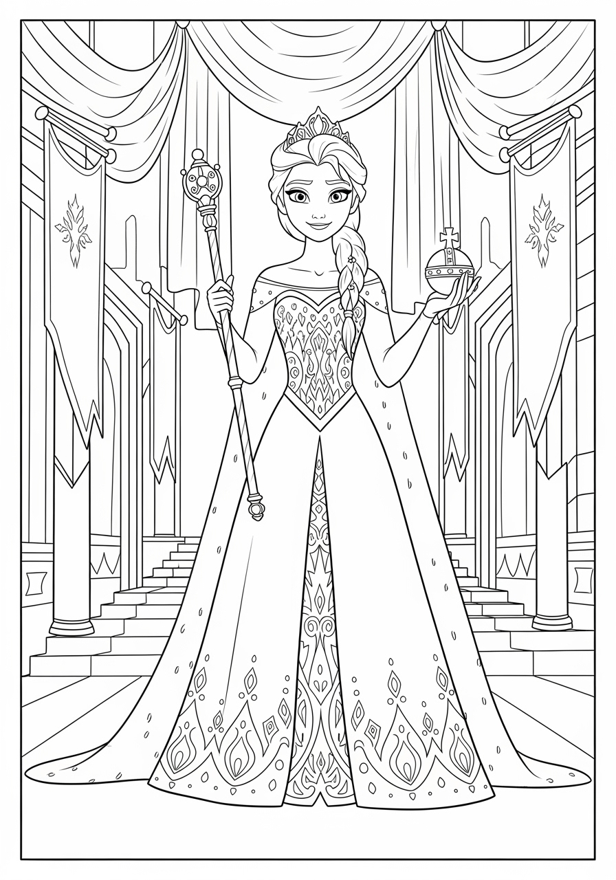 Bring the magic of winter to life with our enchanting "Coloring Page Elsa Frozen." This delightful printable coloring page captures the essence of Elsa, the beloved character from the Frozen series, in a beautifully detailed line art illustration. Designed with young artists in mind, this coloring page features Elsa with her iconic long, flowing hair, styled in an elegant manner, and her stunning winter dress adorned with intricate patterns. Her dynamic pose, with one hand raised as if conjuring ice, invites children to explore their creativity while developing fine motor skills. The bold outlines and simple shapes make it easy for little hands to stay within the lines, ensuring a successful and satisfying coloring experience. Perfect for classroom activities, a rainy day at home, or a calming travel activity, this printable page offers endless opportunities for imaginative play. Let your child dive into the world of Elsa, enhancing their creativity and patience as they bring this magical scene to life. Download this charming coloring page today and watch as your child's creativity blossoms in the world of "coloring pages elsa frozen, elsa coloring pages frozen, and elsa frozen for coloring."