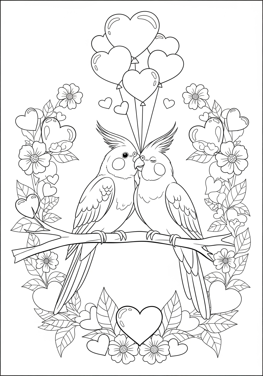 Cockatiel in a Valentine’s Day Setting Coloring Page