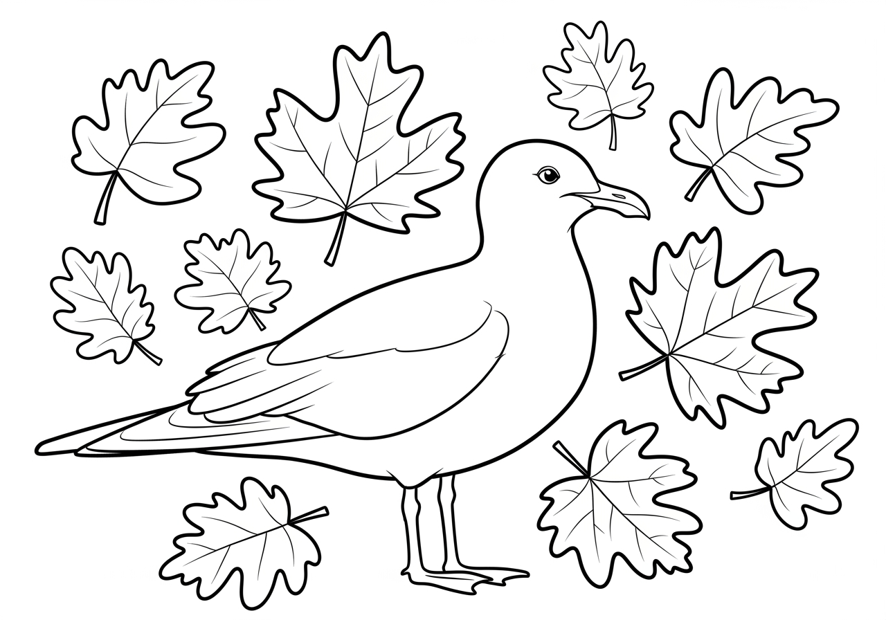 Seagull with Autumn Leaves for Thanksgiving Coloring Page