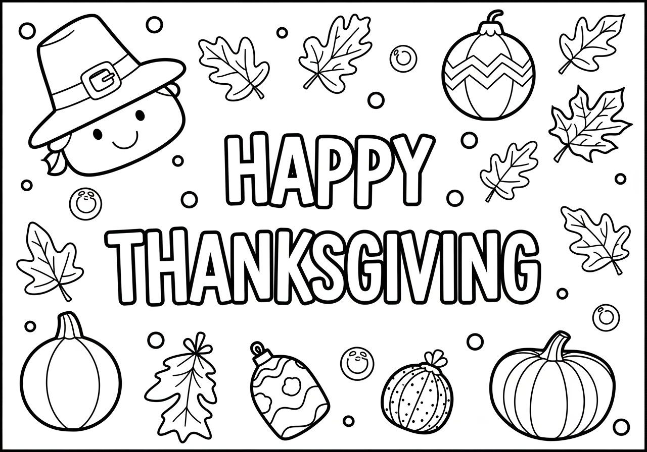 Introduce your little ones to the festive spirit with our charming turkey coloring pic. This delightful illustration features a friendly turkey with a rounded body and plentiful, layered feathers, standing proudly at the center of the page. The design is rendered in crisp black and white line art, making it an ideal activity for developing fine motor skills and encouraging creativity. Perfect for classroom use, home crafts, or even a calming travel activity, this coloring page invites children to explore their imagination and enjoy some mindful coloring time. The playful "Gobble Gobble Day!" text at the top adds a cheerful note, while the autumn-themed background is adorned with cartoon-style pumpkins and foliage, enhancing the festive feel. This turkey coloring pic provides an excellent opportunity for children to relax and express themselves through art, promoting a sense of accomplishment and joy. Easily downloadable and printable, this coloring page is a must-have for parents and educators looking to enrich their holiday-themed activities.