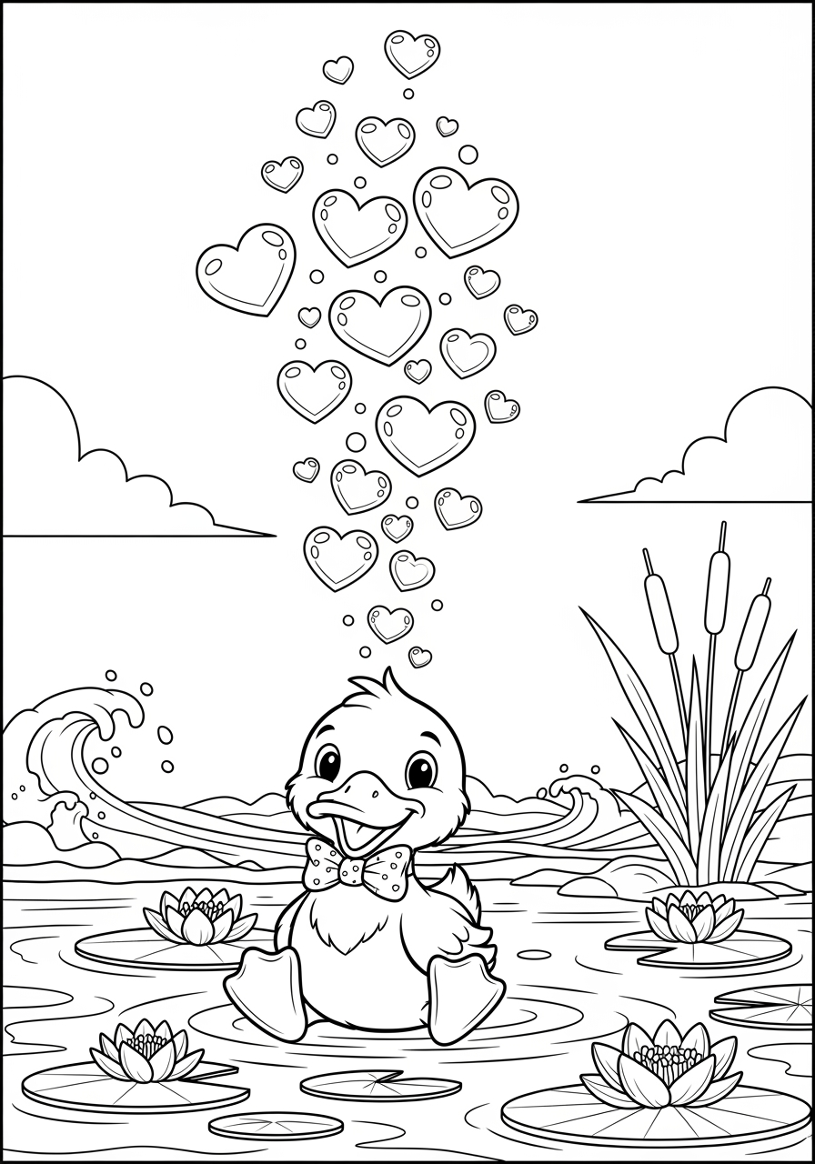 Valentine’s Day Duck with Hearts Coloring Page