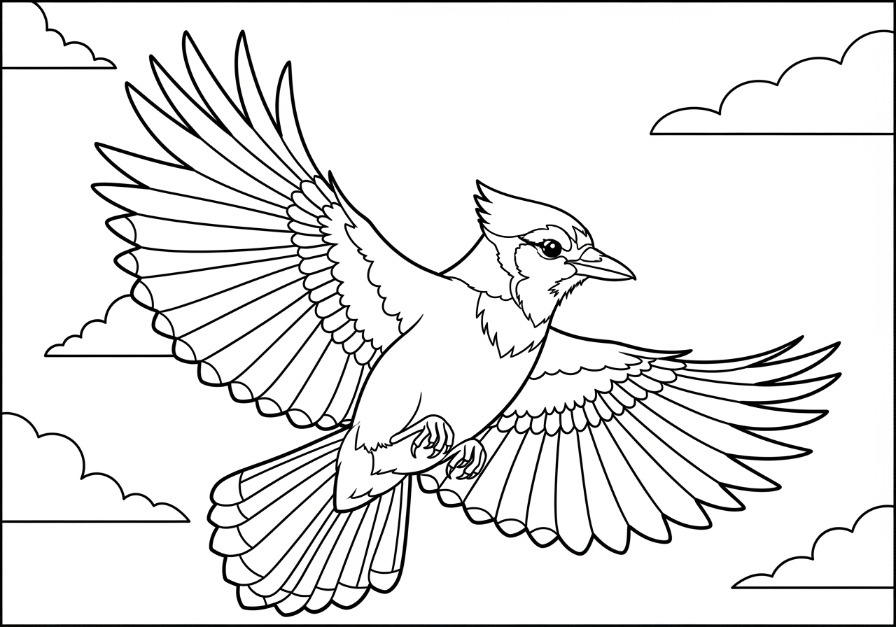 Blue Jay Flying in the Sky Coloring Page