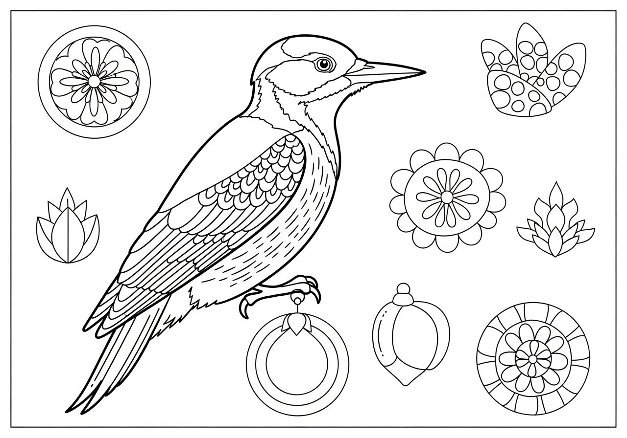 Realistic Woodpecker Coloring Page