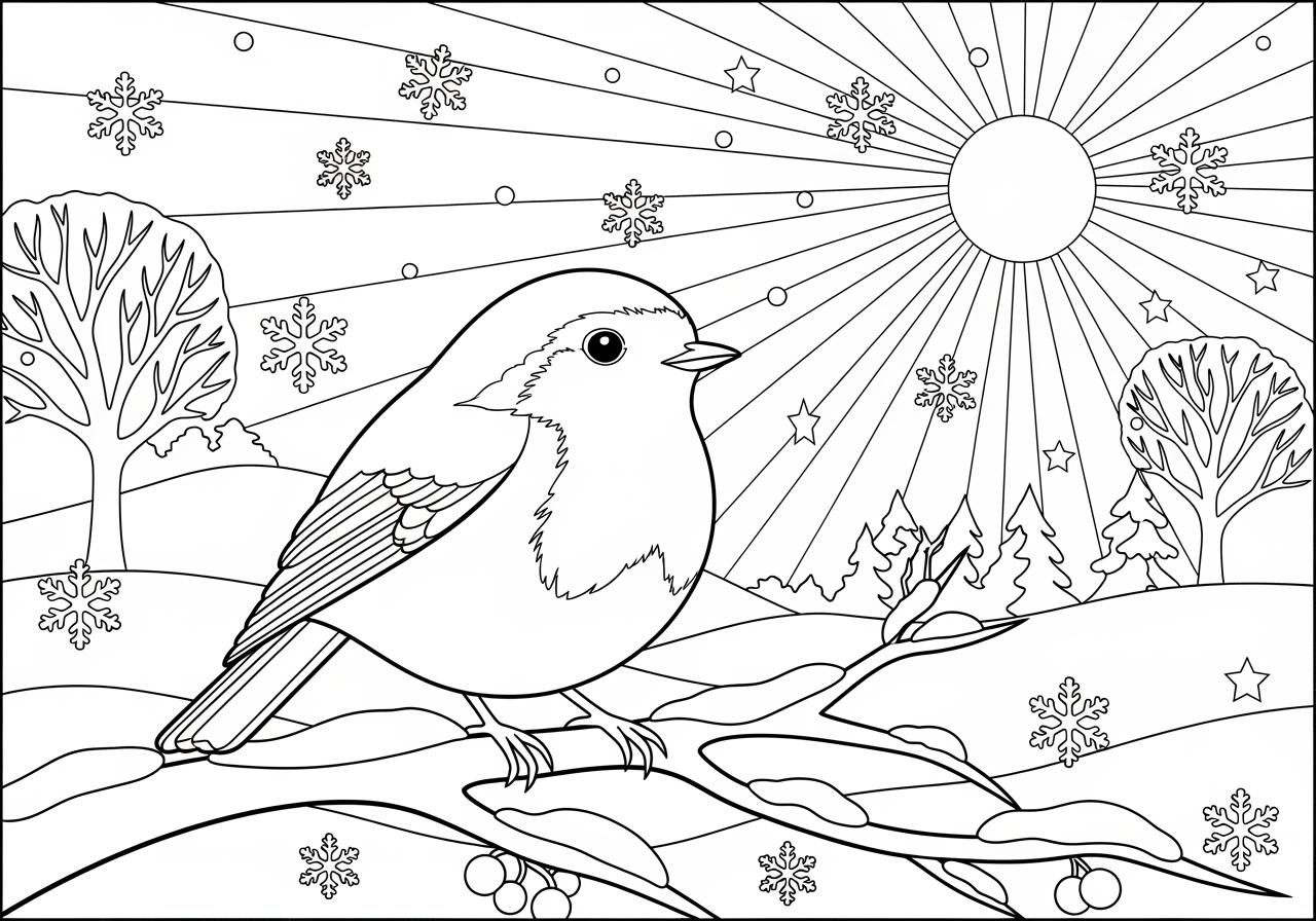 Robin in Winter Scene Coloring Page