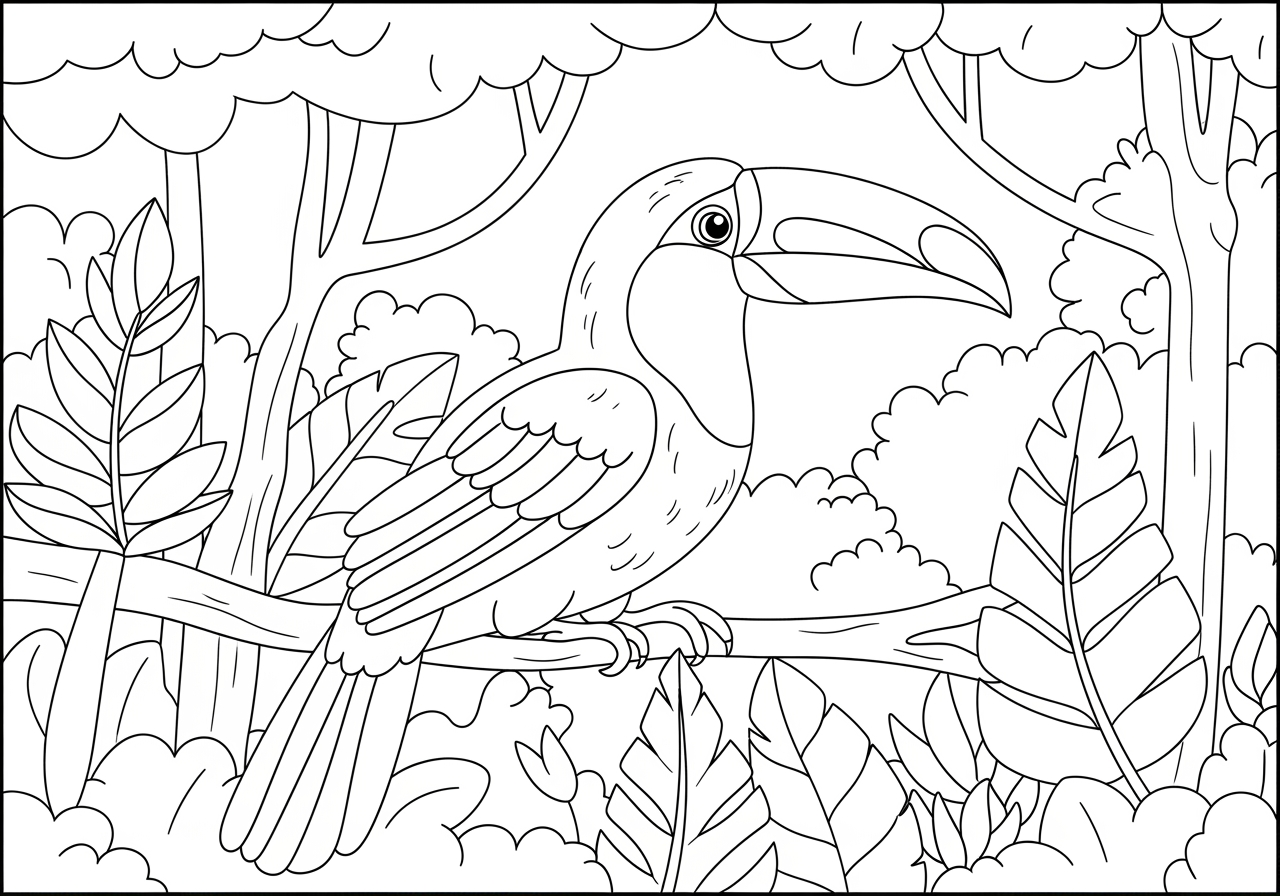 Toucan in a Rainforest Coloring Page