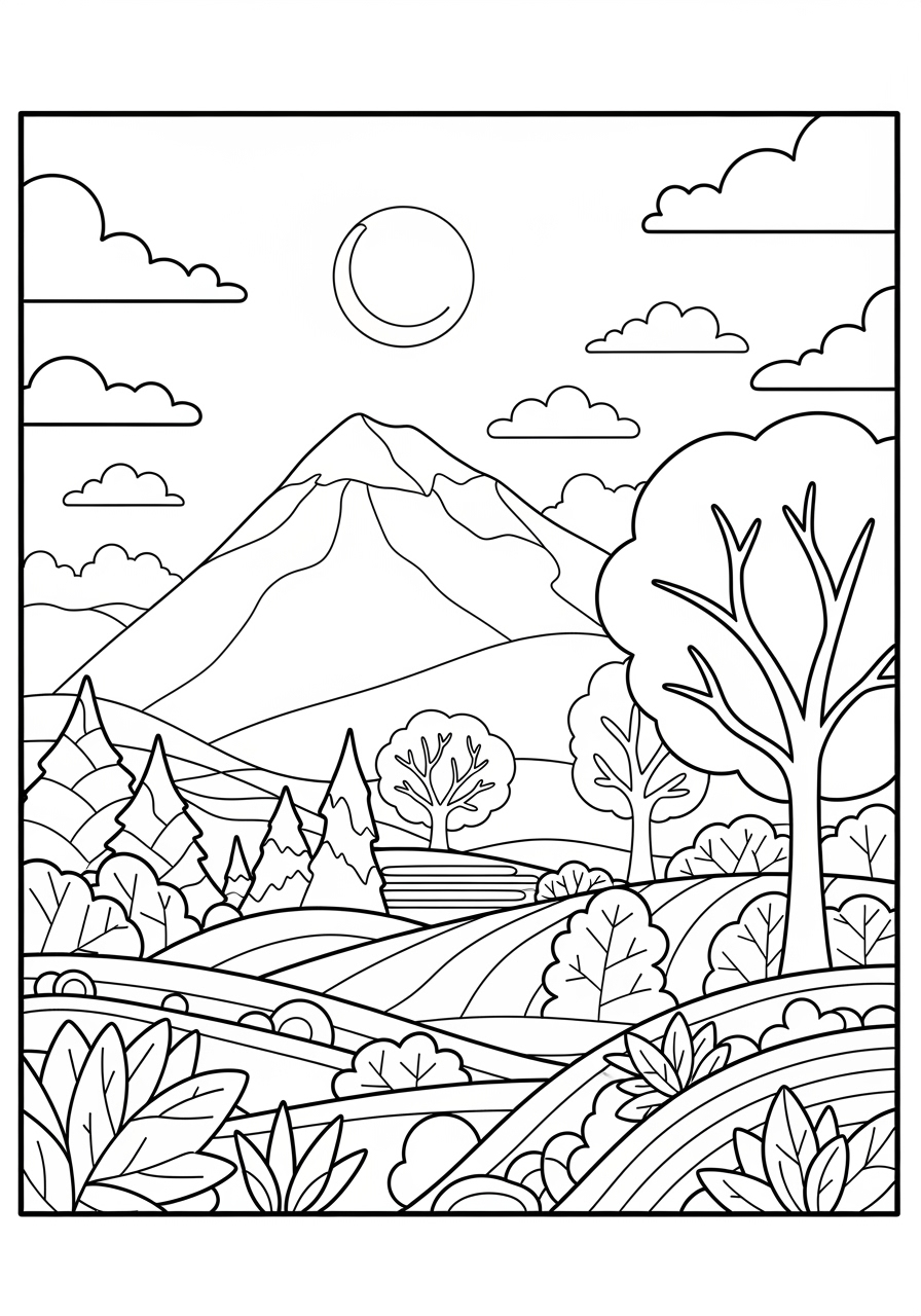Fall Scenery Coloring Page to Print Out and Color
