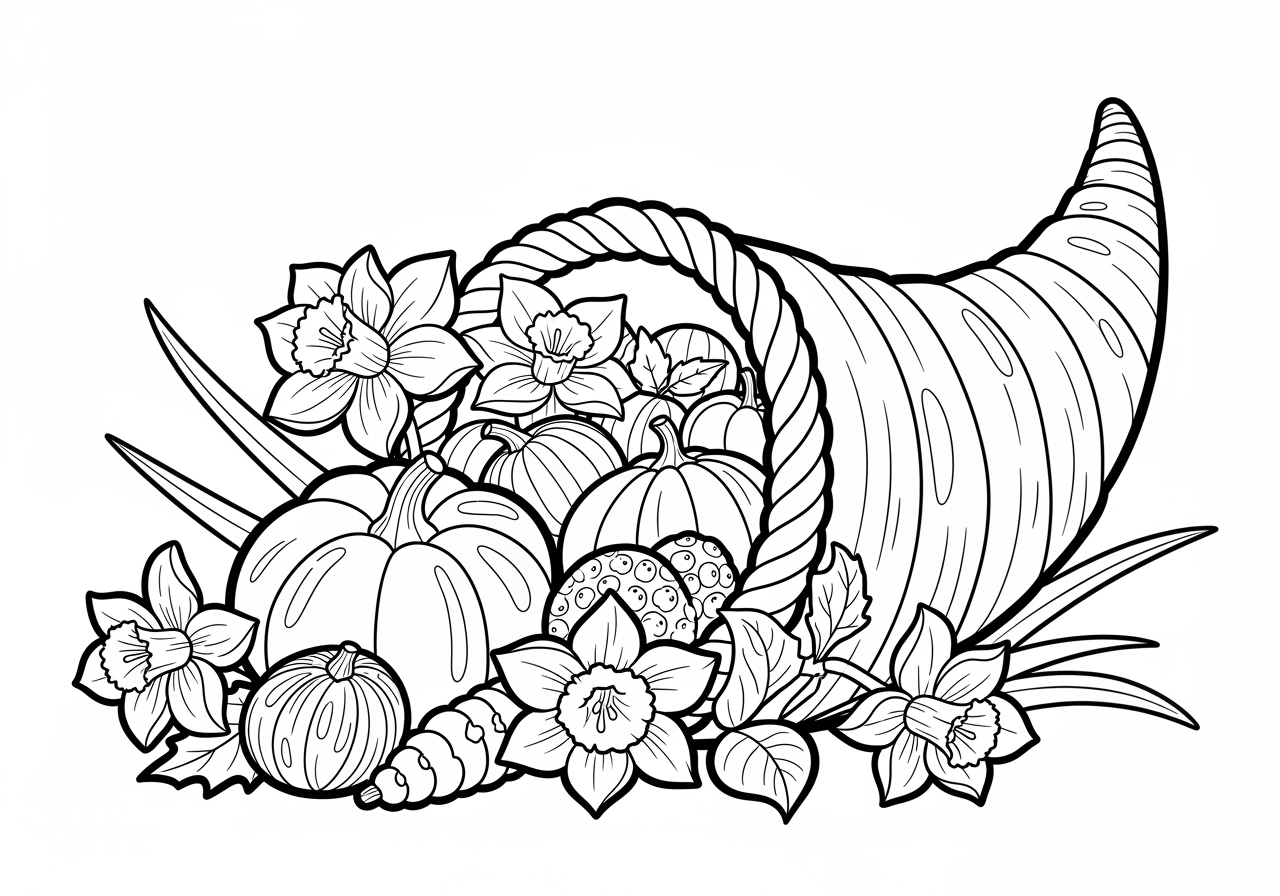 Celebrate the festive season with our delightful Thanksgiving turkey with daisies coloring page. This printable coloring activity is perfect for young artists eager to explore their creativity while enhancing fine motor skills. Featuring a friendly turkey as the centerpiece, surrounded by cheerful daisies, pumpkins, and autumn leaves, this coloring page offers a simple yet engaging design. The bold outlines and large shapes make it easy for children to color and enjoy, providing a sense of accomplishment. Ideal for classroom settings, home crafting projects, or as a calming travel activity, this page brings joy and imagination to any setting. The addition of a "Happy Thanksgiving" banner and a few elements like a cheerful sun and clouds further enriches the holiday theme, promising a vibrant and festive coloring experience. Download and print this page to provide children with a delightful opportunity to bond over coloring, celebrate the season, and create cherished memories.